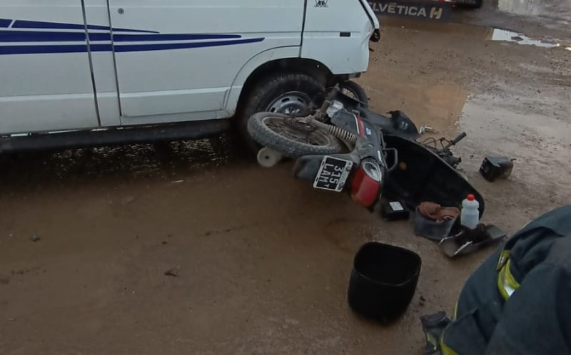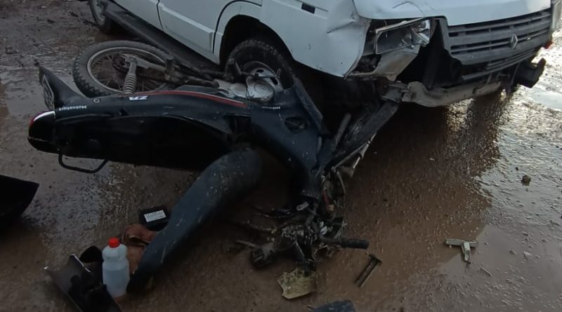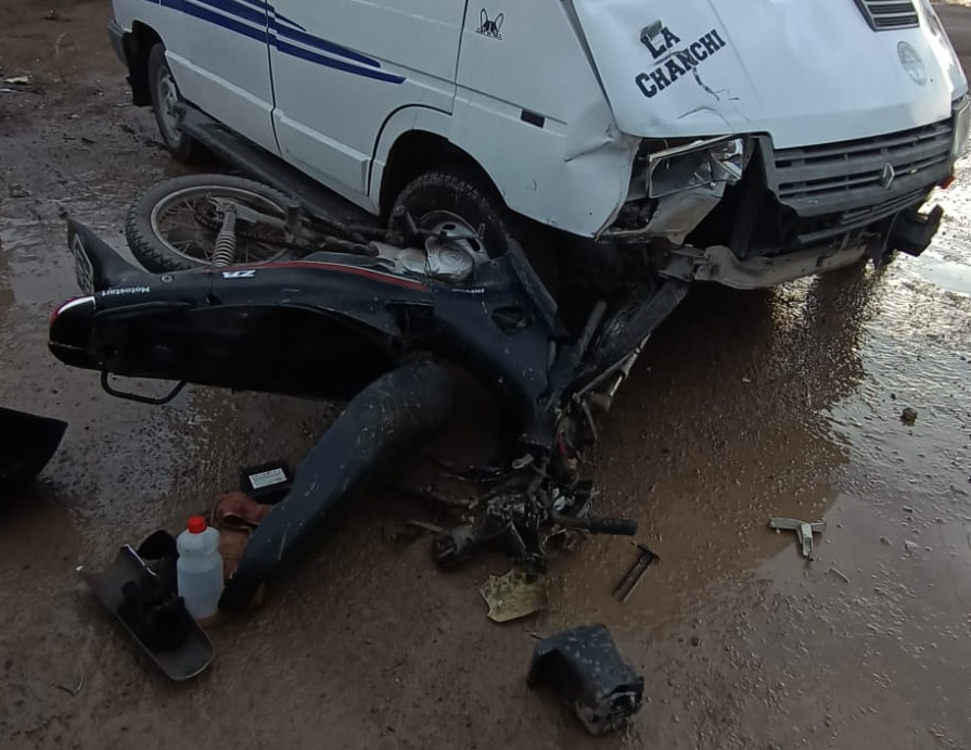 Un Renault Trafic fue embestida por una moto en el kilómetro 696 de la ruta 3, informaron fuentes oficiales.