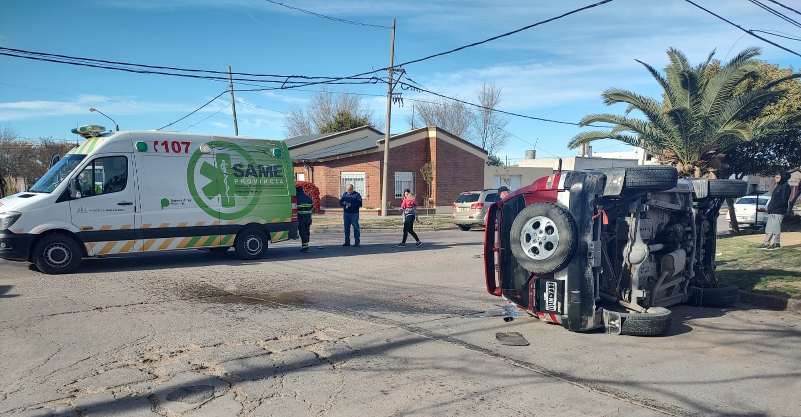 Una camioneta volcó esta mañana luego de chocar con un auto en Humboldt y Remedios de Escalada.