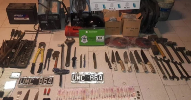 En ese momento el hijo de la dueña efectuó algunos disparos al aire y puso a los intrusos en fuga. (0223)
