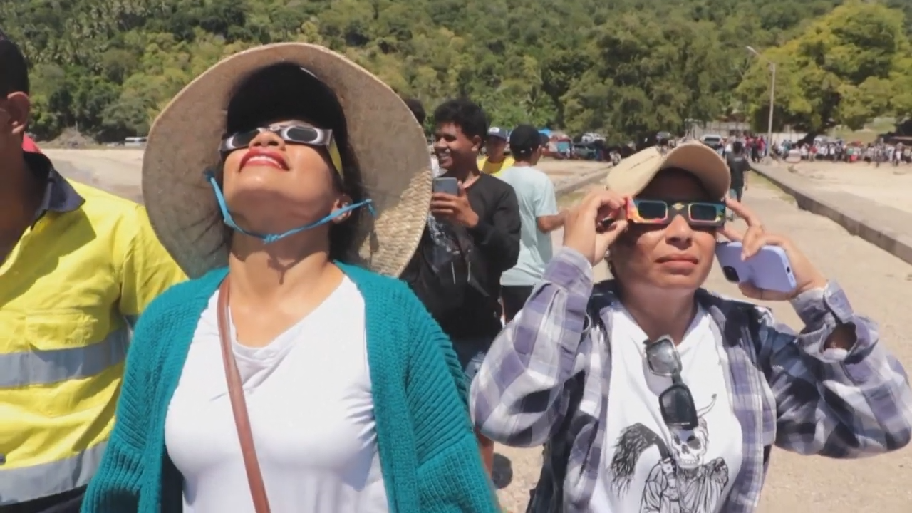 En el extremo este de Timor Oriental, más de mil personas, incluidos turistas y astrónomos de países del Sudeste Asiático, se congregaron para ver el eclipse total.