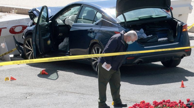 De acuerdo con la cadena NBC, hubo disparos cerca del edificio luego de que un automóvil se lanzó contra la barricada que lo separa de la calle y en la que se encontraban dos policías.