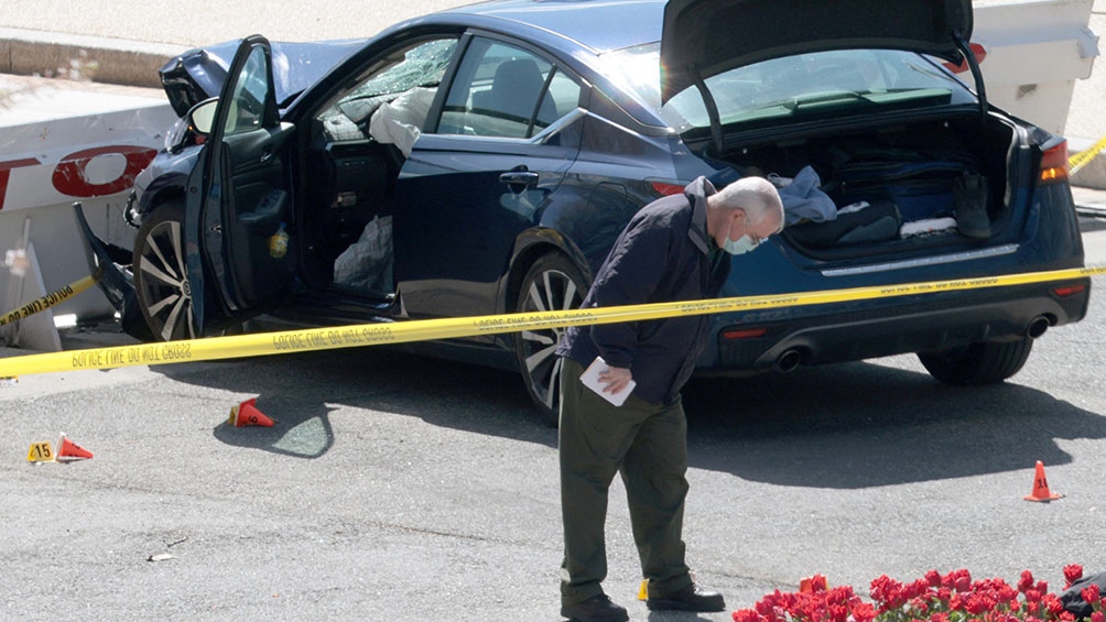 De acuerdo con la cadena NBC, hubo disparos cerca del edificio luego de que un automóvil se lanzó contra la barricada que lo separa de la calle y en la que se encontraban dos policías.