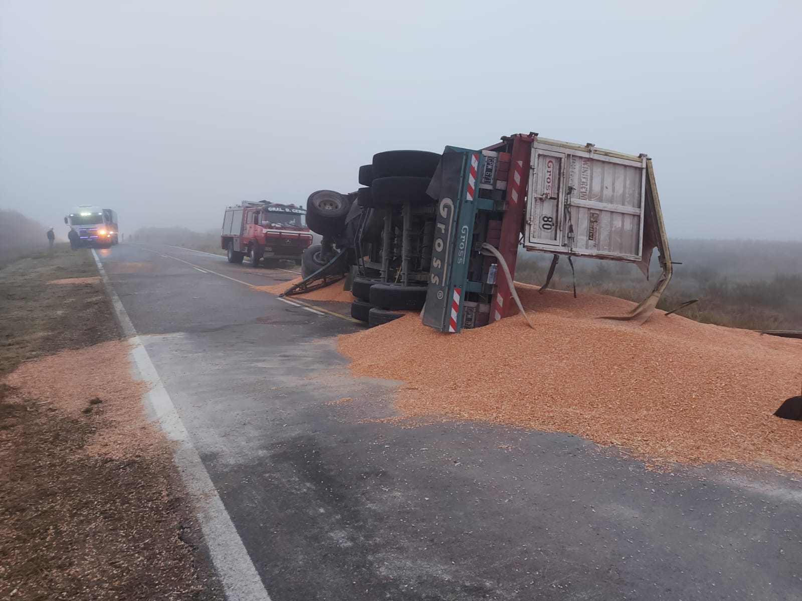El acoplado de un camión volcó este miércoles en el kilómetro 32 de la ruta 35, informaron fuentes oficiales.