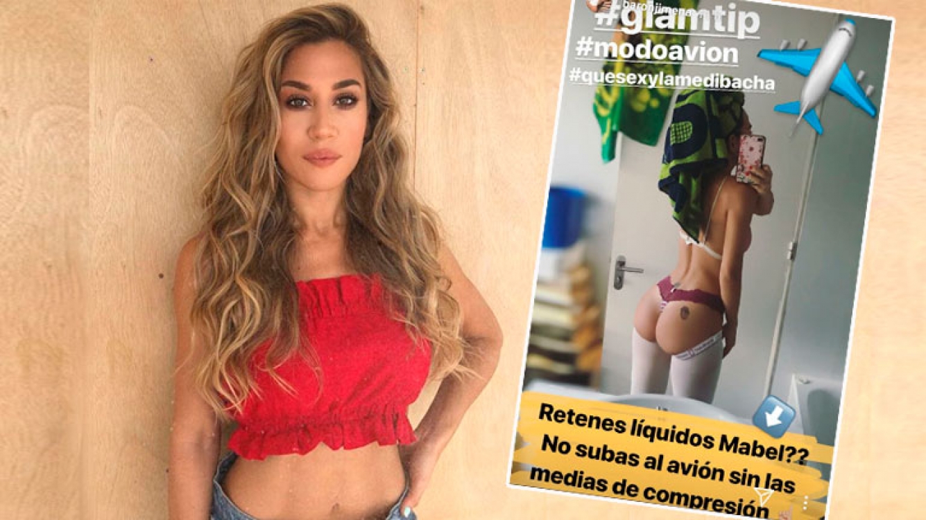 “Glam tip. Modo avión. ¡Qué sexy la medibacha!”, escribió Jimena en la foto que subió a Instagram Stories. Luego, agregó con humor: “¿Retenés líquidos Mabel? No subas al avión sin las medias de comprensión”, acotó, ya con las medias puestas para mejorar la circulación en las piernas y lista para volar, mostrando su lencería súper sexy.