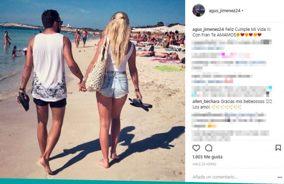 “Feliz cumple mi vida. Con Fran te amamos”, escribió el novio de Bechara en Instagram, e ilustró el posteo con una foto de los dos caminando por la playa. Y ella le respondió: “Gracias, mis bebés. Los amo”. Luego Ailén mostró el enorme ramo de rosas rojas que Agustín le hizo llegar como obsequio de cumpleaños.