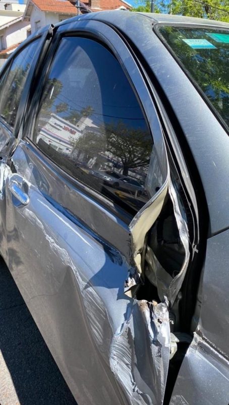 “Ella fue a grabar un sueño, dejó el auto estacionado en Chivilcoy y Asunción, esto es en Villa Devoto y al volver, lo encontró así“, dijo al tiempo que mostraba una imagen del vehículo, del lado del acompañante, abollado, rayado y con la puerta prácticamente desencajada. Pero lo que más indignó al periodista fue el echo de que la persona responsable del accidente, no dejó ningún dato de contacto para que su hija pudiera hacer el reclamo ante el seguro.