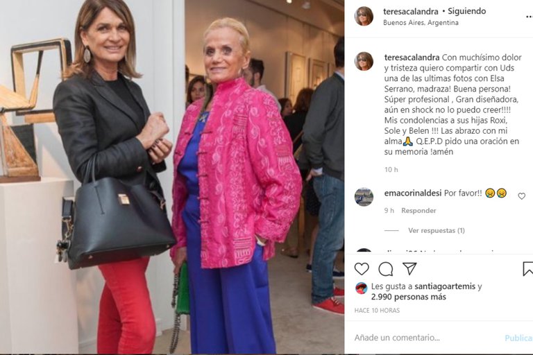 Por su parte, Flor de la V escribió: “Consternada con esta triste noticia. Elsa Serrano fue una gran precursora de la moda. Hizo vestidos icónicos que recordaremos por siempre. Mi más sentido pésame a toda su familia y amigos”.