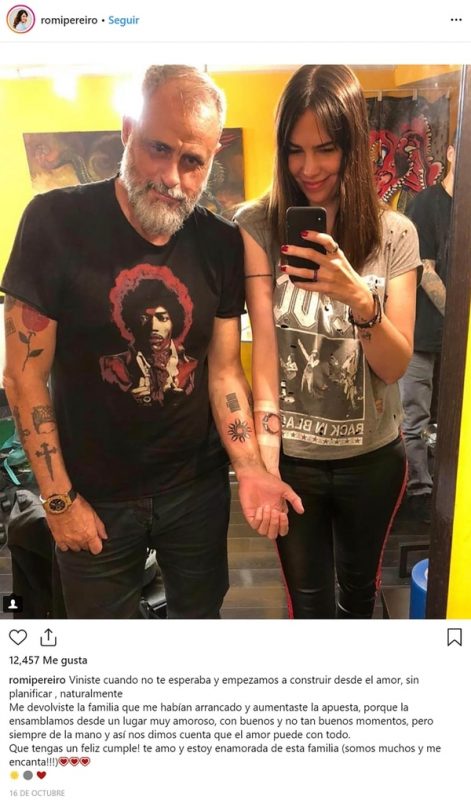 El pasado 16 de octubre, Rial fue quien cumplió años y decidió festejarlo de una manera muy original: con su pareja se realizaron un tatuaje. Ella publicó una foto y le dedicó un emotivo mensaje: “Viniste cuando no te esperaba y empezamos a construir desde el amor, sin planificar, naturalmente“.