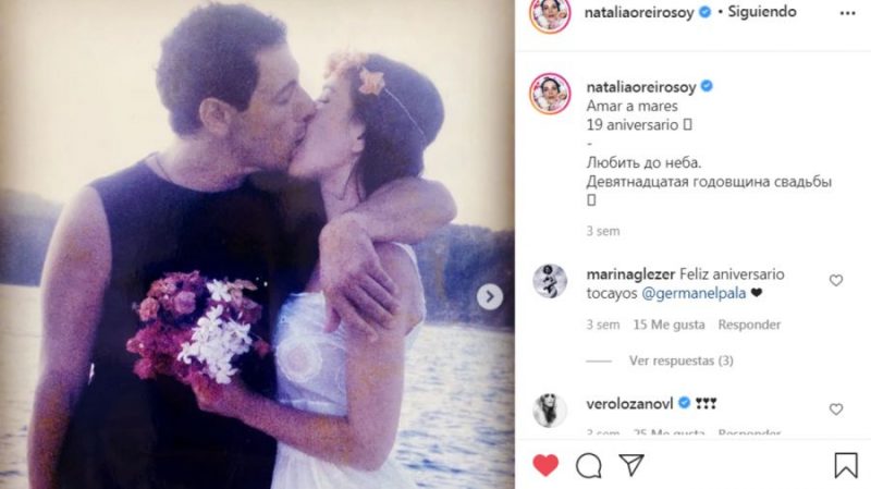 “Amar a mares, 19 aniversario”, fue lo que escribió oportunamente la actriz de cine y televisión. En esa ocasión, fueron dos las fotos que ilustraron la alegría y el paso de los años. Por lado, una imagen de Natalia y Ricardo dándose un beso durante su ceremonia de casamiento, y por el otro, una foto con tres sombras: una correspondía a la actriz, la otra al compositor y la última al pequeño Merlín Atahualpa, el hijo de ambos.