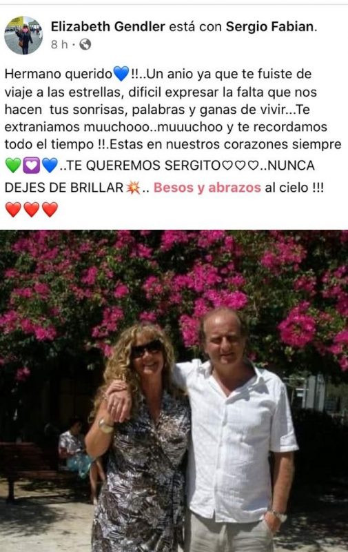 Entre tantos mensajes a un año d su muerte, se destaca el de su hermana Elizabeth, quien desde su cuenta de Facebook manifestó: “Hermano querido💙!!..Un anio ya que te fuiste de viaje a las estrellas, dificil expresar la falta que nos hacen tus sonrisas, palabras y ganas de vivir…Te extraniamos muuchooo..muuuchoo y te recordamos todo el tiempo !!.Estas en nuestros corazones siempre 💚💟💙..TE QUEREMOS SERGITO♡♡♡..NUNCA DEJES DE BRILLAR💥.. Besos y abrazos al cielo !!“.
