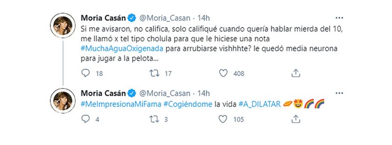 Mucha agua oxigenada, para arrubiarse, ¿viste? Le quedó media neurona para jugar a la pelota”, dijo y en otro posteo agregó: “Me impresiona mi fama”.