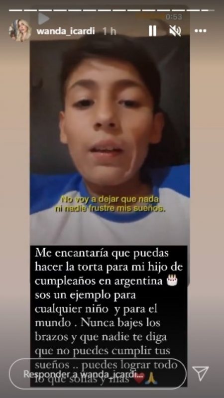 Este martes fue Wanda Nara la que se hizo eco de la noticia y decidió hacerle un pedido muy especial a Joaquín. “Me encantaría que puedas hacerle la torta de cumpleaños a mi hijo en Argentina“, comenzó la empresaria.