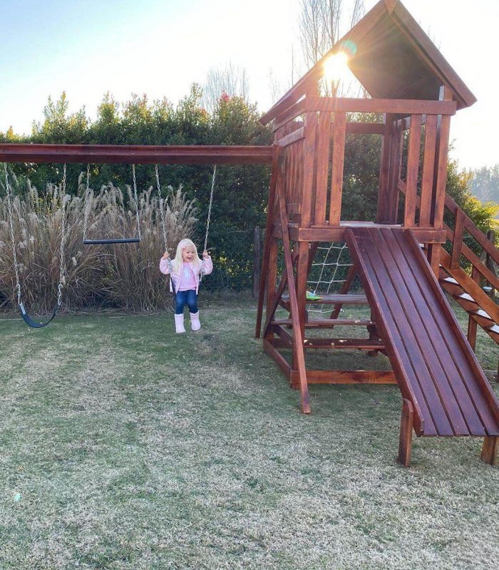 Matilda Salazar tiene una opción más para entretenerse en esta cuarentena larguísima. Su mamá le regaló un juego de plaza enorme que incluye dos hamacas, un tobogán y una mini casita, un complemento ideal para el jardín de la casa de Nordelta en la que las chicas pasan el aislamiento obligatorio.
