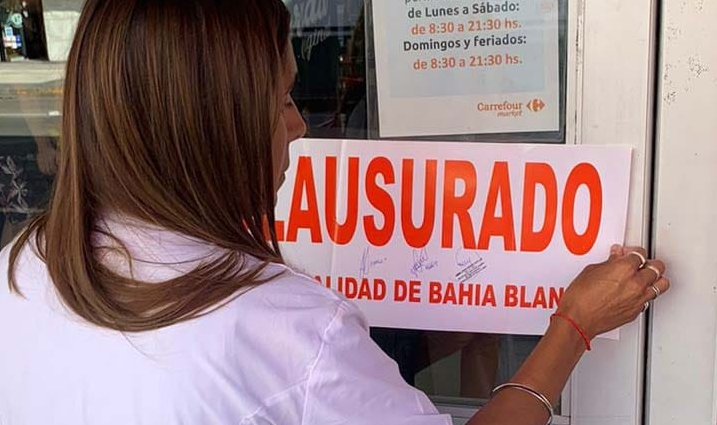 Fuentes oficiales se refirieron a la clausura del supermercado Carrefour, luego de comprobarse diversas infracciones como falta de higiene, desorden y presencia de vectores en sector depósito, moscas y heces de roedores.