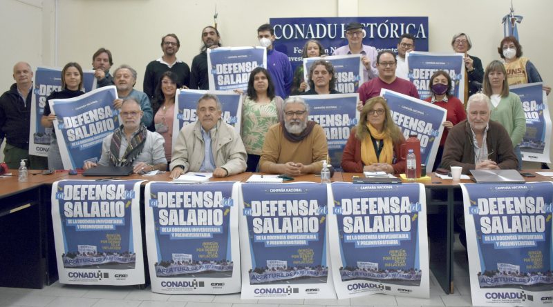 “Ante el evidente desfasaje de los salarios frente al avance inflacionario, la docencia universitaria y preuniversitaria reclama la urgente convocatoria a la paritaria de negociación salarial, al Ministerio de Educación y al CIN”, expresaron en un comunicado difundido tras el plenario.
