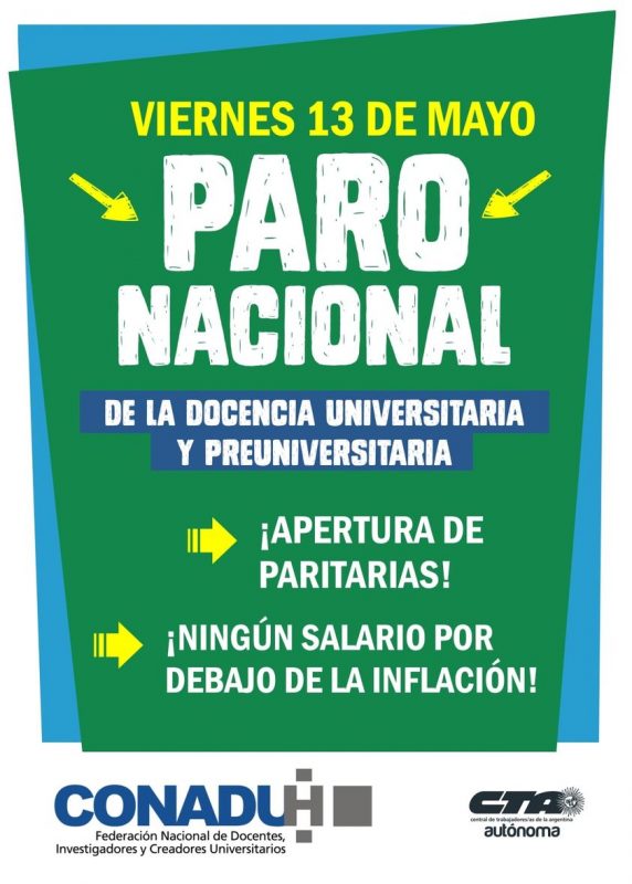 Bajo la consigna “ningún salario por debajo de la inflación”, docentes universitarios de la CONADU Histórica convocaron a un paro nacional de 24 horas para este viernes, en reclamo de la reapertura de las negociaciones paritarias.