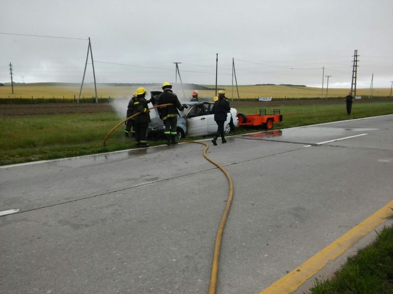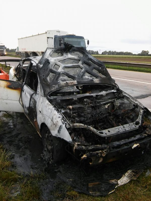 Las llamas consumieron un auto que transitaba por el kilómetro 673 de la ruta 3.