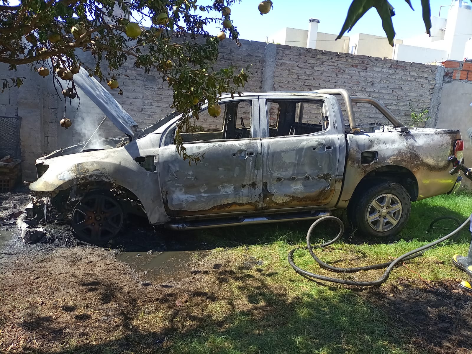 Un incendio se registró este miércoles en una camioneta Ford Ranger, que se encontraba estacionada en el patio de una vivienda ubicada en la calle Pablo Acosta 63.