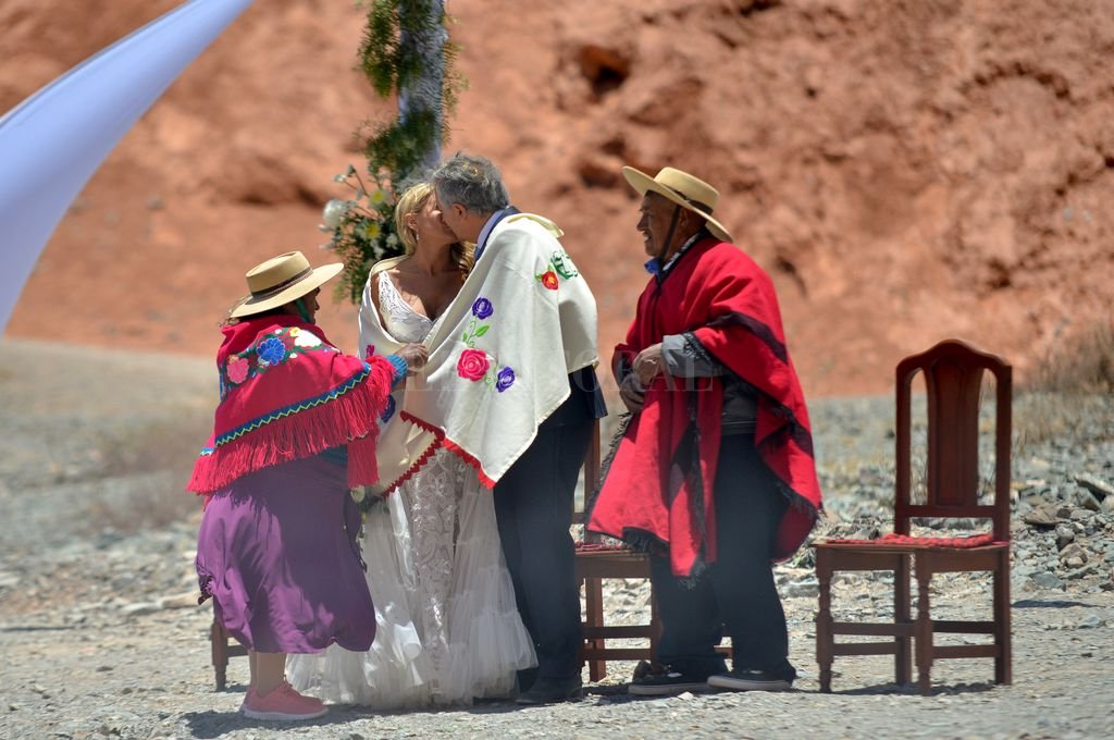 El gobernador de Jujuy, Gerardo Morales, y la abogada Tulia Snopek sellaron este viernes su unión como pareja con una ceremonia de pueblos originarios en el Paseo Los Colorados, en Purmamarca