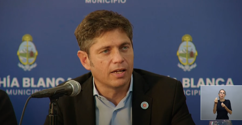 El gobernador de la provincia de Buenos Aires, Axel Kicillof, anunció medidas esta tarde para afrontar la crisis en Bahía Blanca