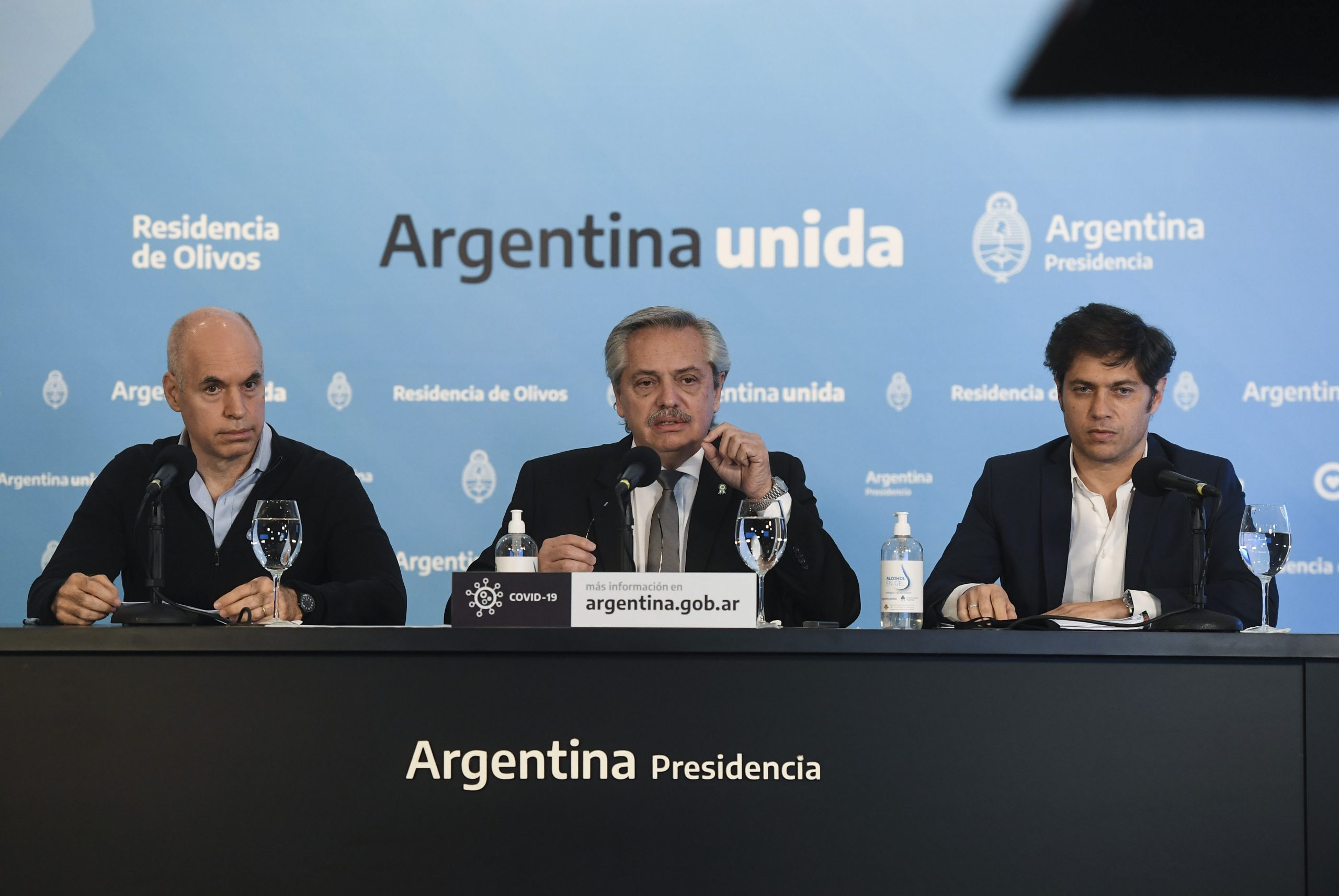 “¿Quién se puede enamorar de la cuarentena? Vinimos a poner en marcha la provincia y de pie la Argentina”, dijo el mandatario de la provincia de Buenos Aires, la hablar en rueda de prensa en Olivos, junto al mandatario y al jefe de Gobierno porteño, Horacio Rodríguez Larreta.