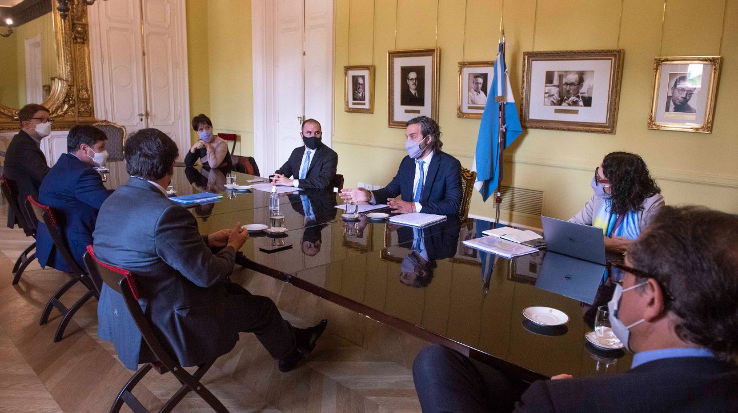 La reunión de Gabinete económico fue encabezada por el jefe de Gabinete, Santiago Cafiero, y participaron los ministros de Economía, Martín Guzmán; de Desarrollo Social, Daniel Arroyo; y de Trabajo, Claudio Moroni; el presidente del Banco Central, Miguel Pesce; la directora de la AFIP, Mercedes Marcó del Pont; y Todesca Bocco.