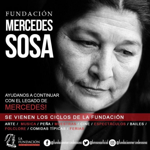 “No queremos resignarnos ante las dificultades y hemos logrado salir adelante en otras oportunidades, pero cada crisis es más profunda que la anterior y solos se hace casi imposible. Creemos, queremos creer, que con el apoyo de los amigos y los colegas de Mercedes, pero sobre todo con el apoyo de su público y todos los que la amamos por todo lo que ella nos dio podemos salir adelante una vez más. Pero la situación es verdaderamente difícil. Una situación limite para la Fundación y el Centro Cultural“, indicó Matus.