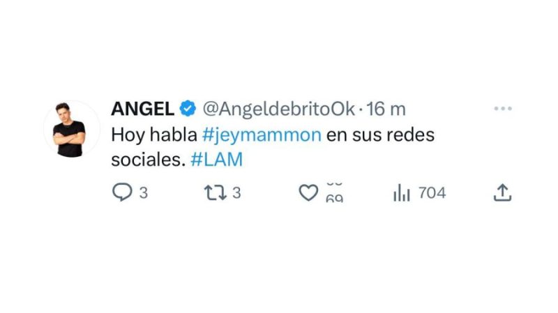 “Hoy habla #jeymammon en sus redes sociales #LAM”, escribió Ángel en la red del pajarito azul. Y luego, agregó: “Publicará una serie de videos explicando su versión de los hechos”.