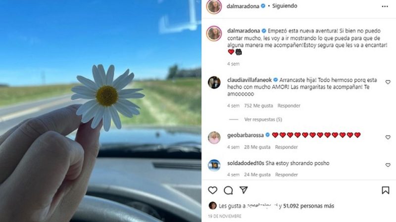 Con este posteo Dalma Maradona anunciaba misteriosamente el comienzo del rodaje de la docuserie que encabezará sobre la vida de su padre, Diego Maradona, y que se llamará La hija de Dios.
