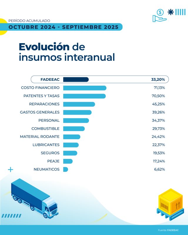 Reparaciones subió 3,74%, mientras que Personal – Conducción registró 2,32% de aumento, correspondiente a la primera cuota del nuevo acuerdo paritario CCT 40/89, con actualizaciones previstas desde septiembre 2025 hasta febrero de 2026.