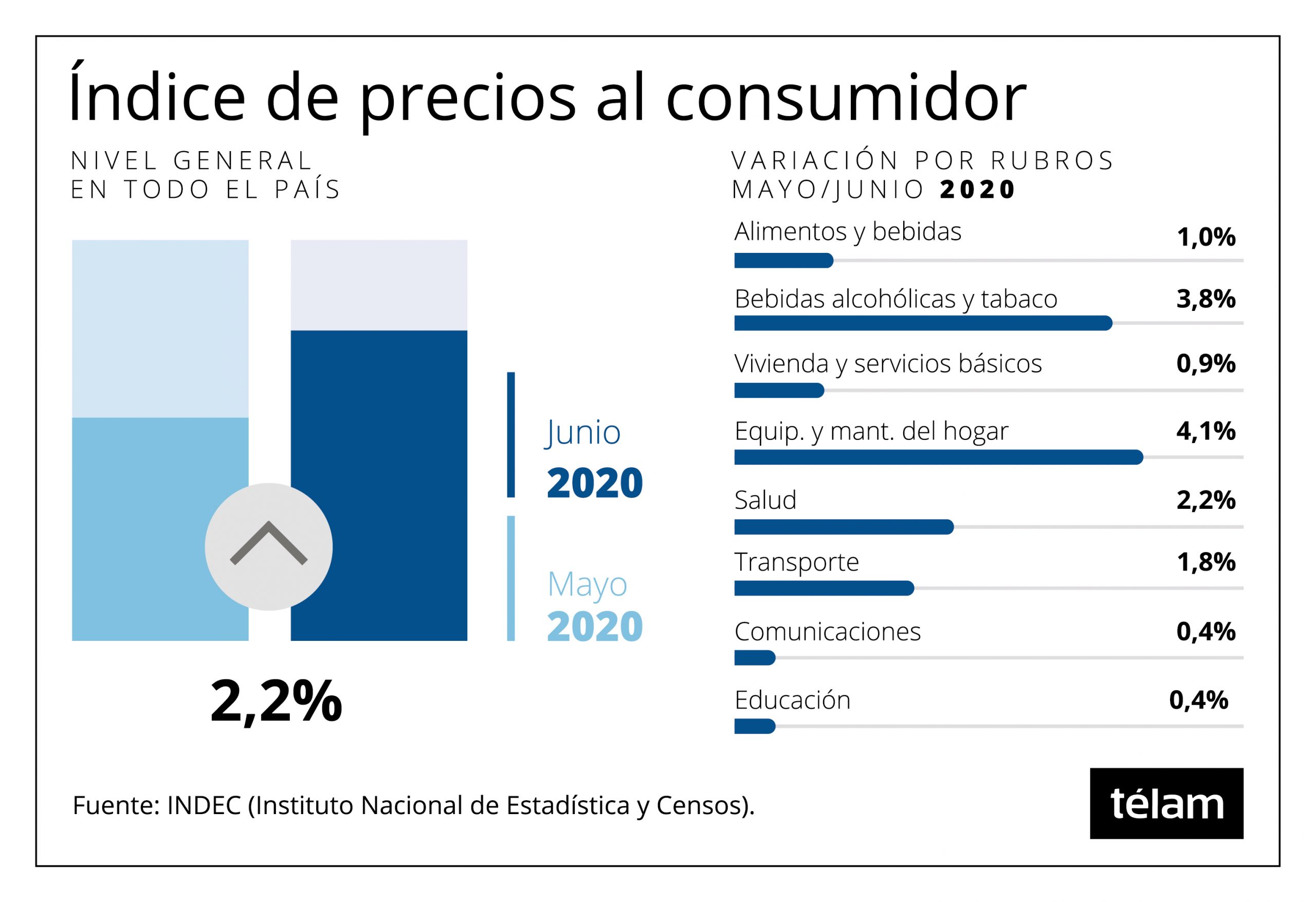 Economia El índice de precios al consumidor subió 2,2% en junio, informó el Indec 16 julio, 2020 De La Bahía Noticias Comentarios