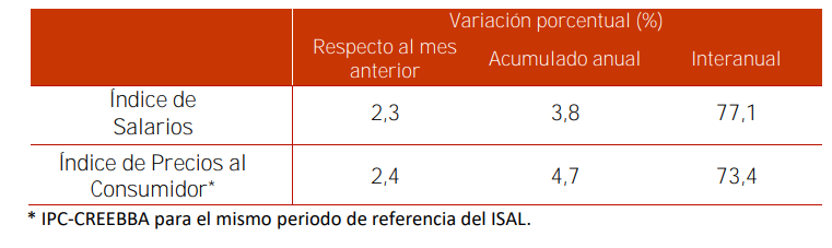 En dicho mes, los precios de la economía medidos por el IPC – CREEBBA se elevaron un 2,4%.