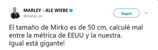 Sin embargo, ante el asombro de sus seguidores, corrigió el dato algunos días después: “El tamaño de Mirko es de 50 cms. Calculé mal la métrica de Estados Unidos y la nuestra. ¡Igual está gigante!”