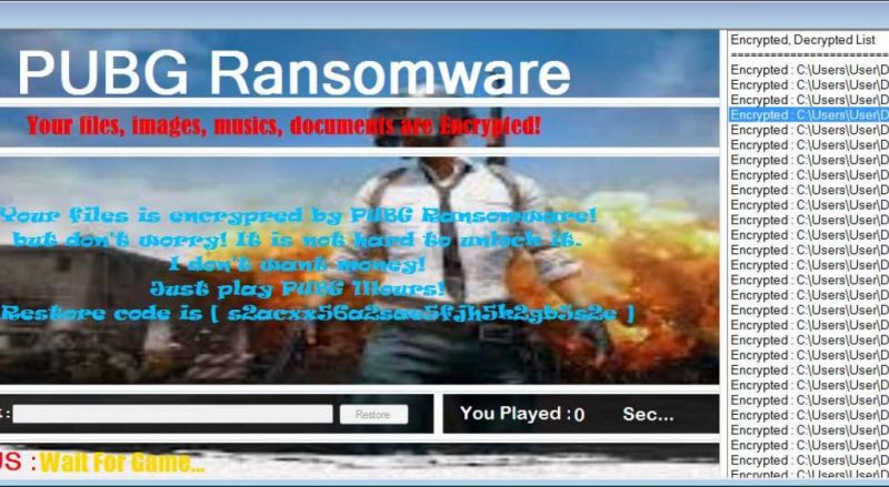 El programa malicioso, bautizado “PUBG Ransomware”, fue descubierto por el grupo Malware Hunter Team, y aparetemente lo único que busca es que la víctima juege durante una hora a un al “BattleUnknown’s Battlegrounds” (comúnmente conocido como PUBG, de ahí el nombre del ransomware).