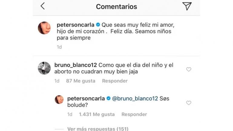 Carla Peterson fue una de las actrices argentinas que militó en favor de la ley de interrupción voluntaria del embarazo. Por este motivo, recibió muchas agresiones en sus redes sociales, a las cuales respondió, generando polémica.