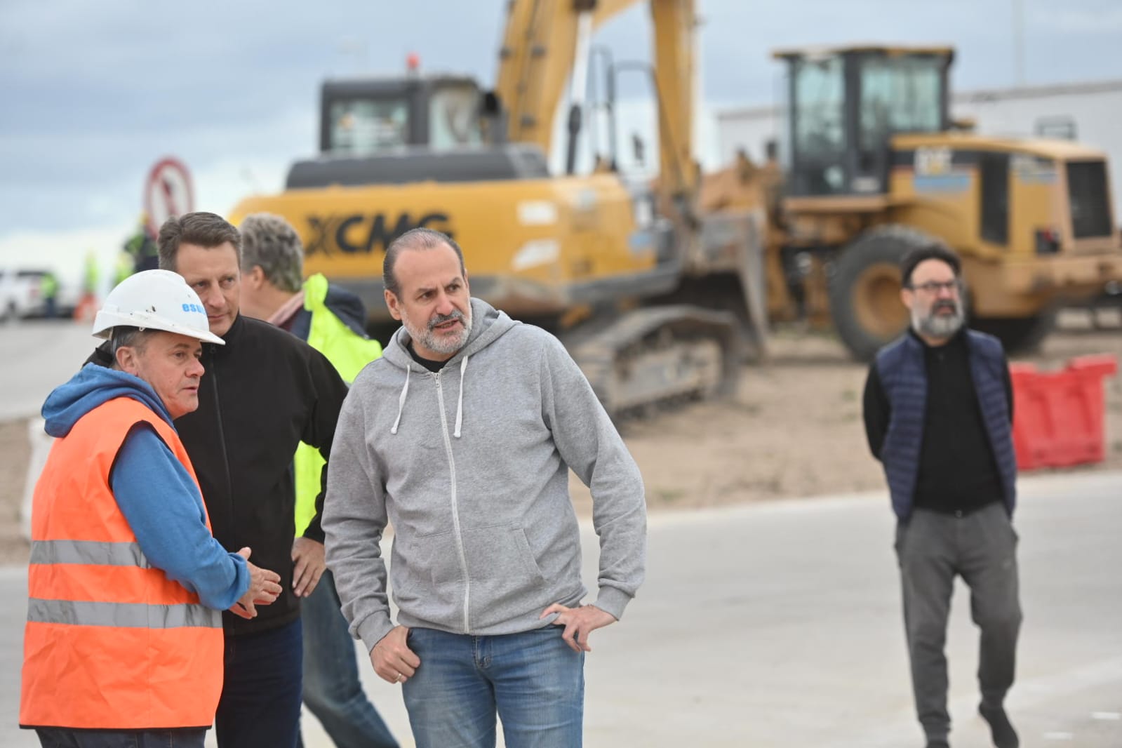 El intendente Federico Susbielles; el secretario de Obras Públicas, Gustavo Trankels, y el equipo de Vialidad provincial recorrieron “la reactivada obra del puente de Circunvalación Norte”.