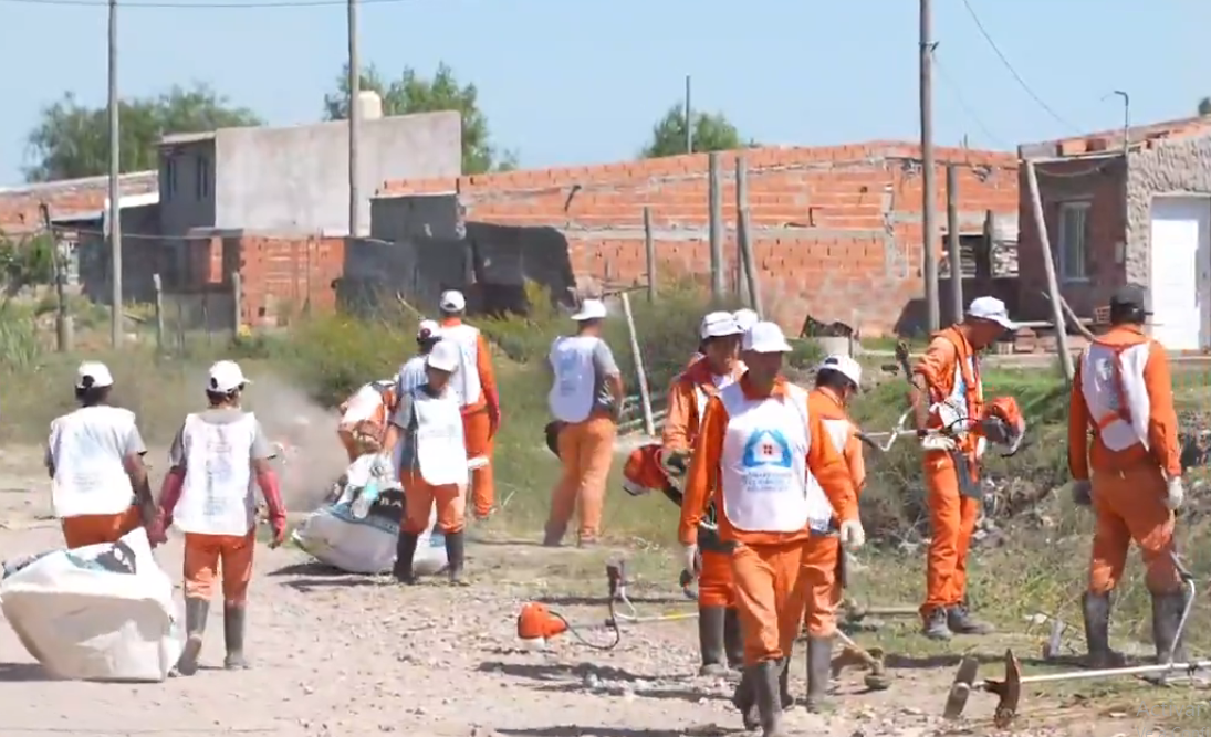 El intendente Federico Susbielles calificó como “maravilloso” el trabajo de limpieza y saneamiento de arroyos y canales que hicieron los cooperativistas del Organismo Provincial de Integración Social y Urbana en los barrios Caracol II y Evita.