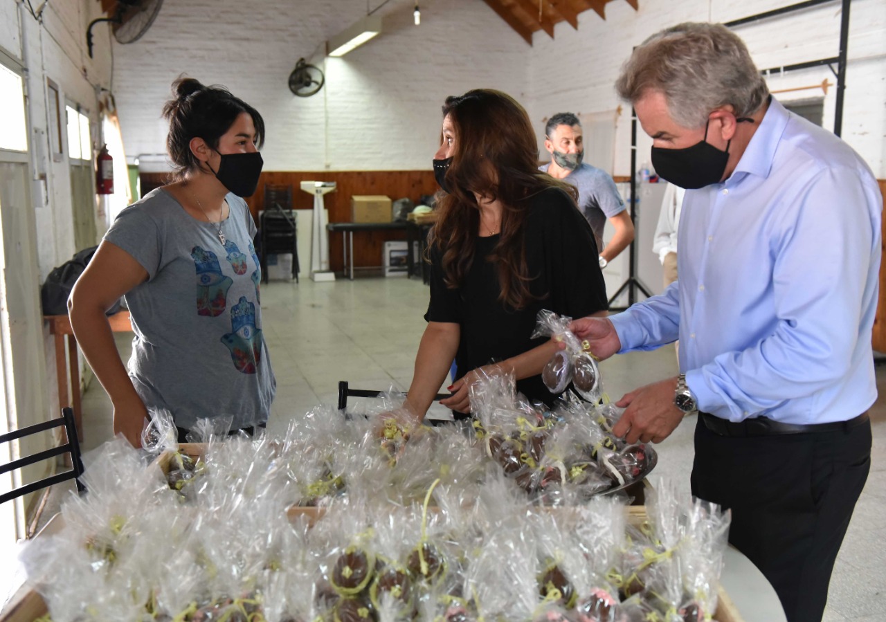 Junto a la secretaria de Políticas Sociales, Vanina González, recorrieron la huerta que se desarrolla en la sede de la Sociedad de Fomento, en el marco del programa Jóvenes por los Jóvenes de la Subsecretaría de Niñez y Adolescencia y entregaron para las niñas y niños del sector huevos de Pascua elaborados por internos de la Unidad Penal N°4, con materiales e ingredientes comprados por el Municipio.