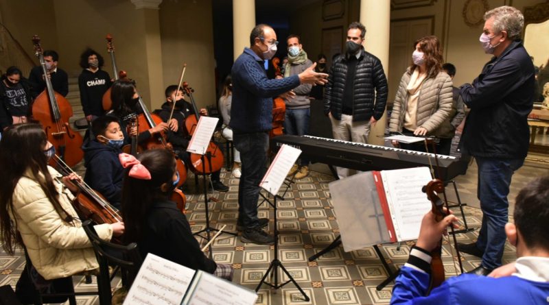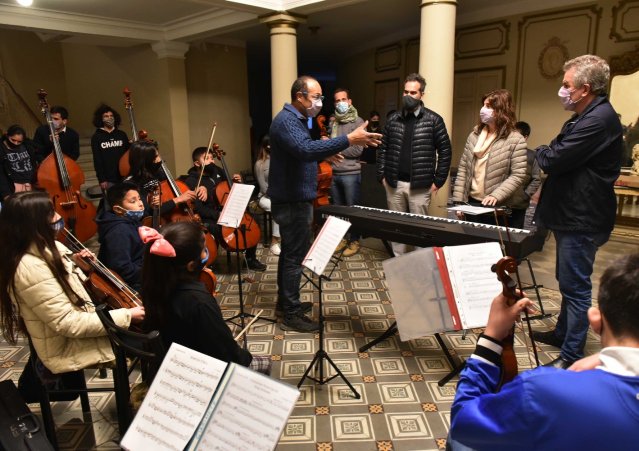 El intendente Héctor Gay presenció un ensayo de la Orquesta Escuela Infantil y Juvenil Barrio Miramar, que se realizó en el Teatro Municipal en el marco del mes aniversario del edificio patrimonial.