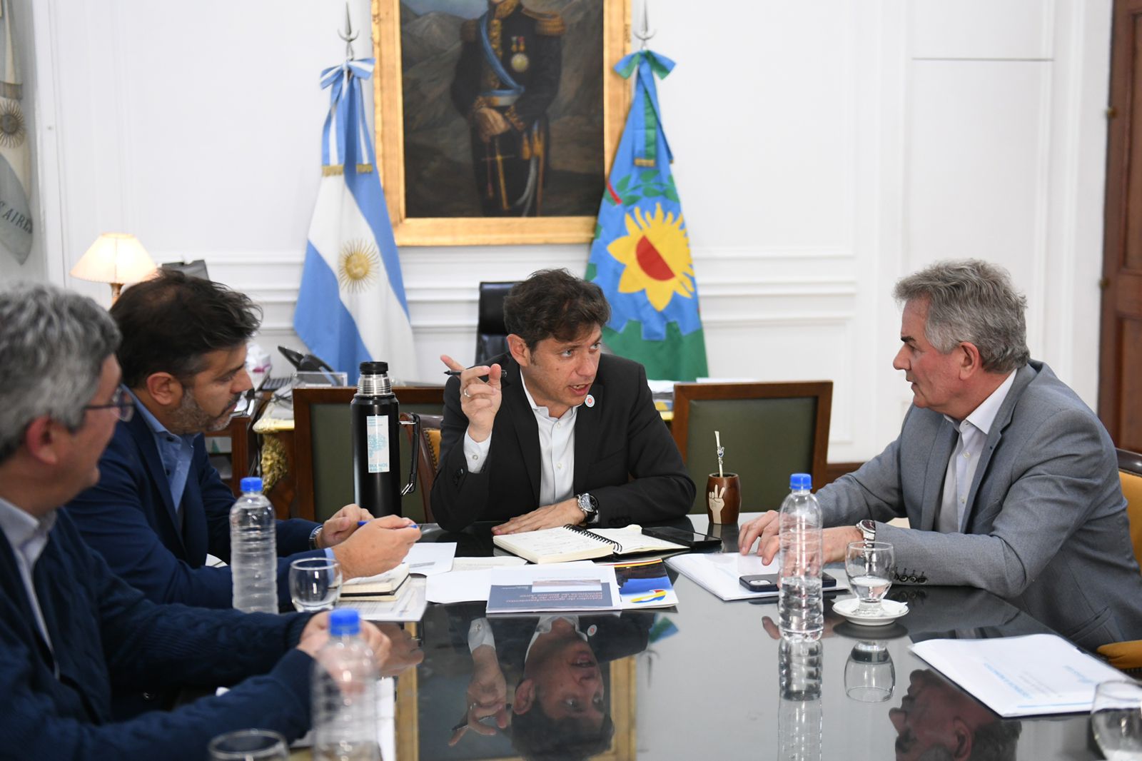 El intendente Héctor Gay encabezó ayer por la tarde una reunión con el gobernador de la provincia de Buenos Aires, Axel Kicillof, con el objetivo de conversar sobre la utilización del agua del Río Negro y la situación hídrica en la ciudad.