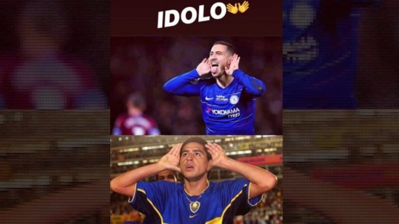 Eden Hazard, crack del Chelsea inglés, es un confeso fanático de Juan Román Riquelme y el lunes, luego de su fabuloso primer gol ante West Ham en el 2-0 por la Premier League, imitó el festejo del “Topo Gigio” que inmortalizó el ídolo de Boca.