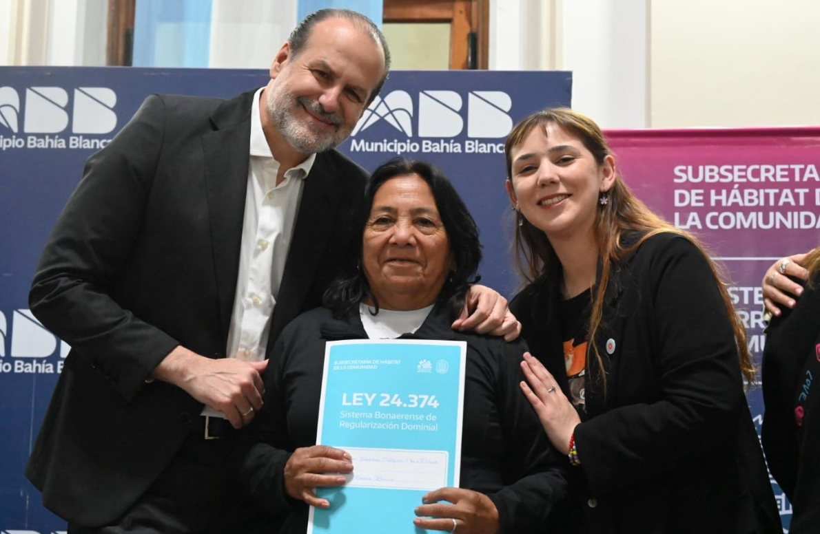 En un acto realizado en el Municipio de Bahía Blanca, el intendente Federico Susbielles, junto al subsecretario de Hábitat de la Comunidad de la Provincia de Buenos Aires, Rubén Pascolini, encabezó la entrega de 307 escrituras a familias del distrito en el marco del Programa de Regularización Dominial.