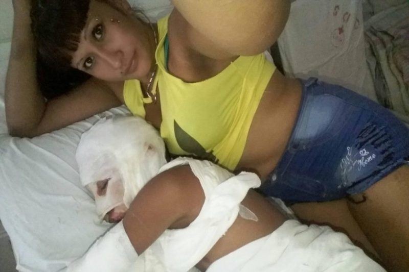 San Juan: el niño se quemó todo el cuerpo en Navidad y la madre se saca fotos sexys con él