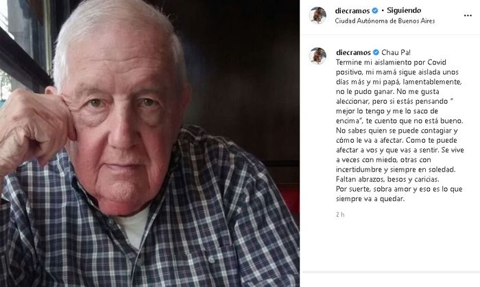 Diego Ramos contó a través de Instagram que su papá murió a causa del coronavirus.