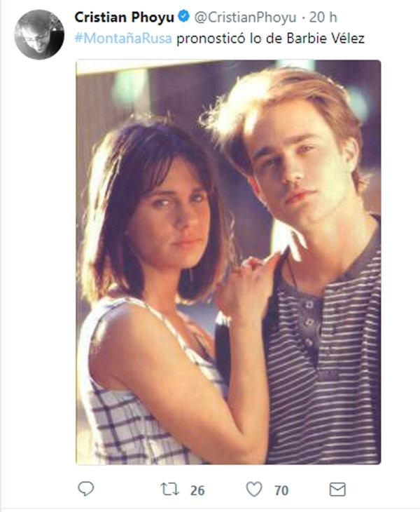 “Montaña Rusa pronosticó lo de Barbie Vélez”, escribió el seguidor de Nazarena al que ella le puso “Me gusta”. En la novela, la madre de Mariana (Dupláa), estaba casada con el padre de Ale (Pauls), pero a diferencia de lo que pasa con la actriz y su novio, que tienen en común a su hermanito Thiago, de siete años, la pareja de la ficción no tenía parientes en común.