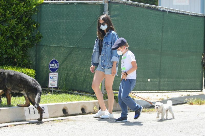 En las imágenes se los puede ver a todos con barbijo en este contexto de pandemia, caminando relajados por el barrio privado del actor, y con los perros también como compañía. Tras la salida, se los vio ingresar a la residencia del ganador del Oscar.