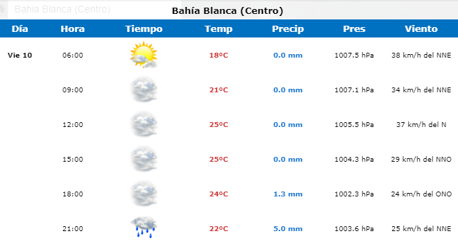 El pronóstico del tiempo para las próximas horas en Bahía Blanca