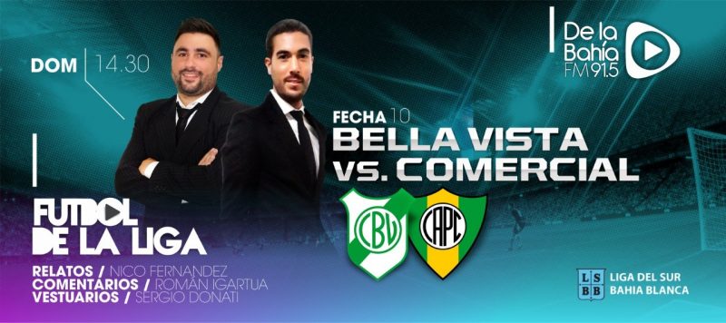 El primer encuentro que emitirá nuestra emisora será Bella Vista-Puerto Comercial desde “La Loma”, el domingo desde las 14.30, con los relatos de Nico Fernández, los comentarios de Román Igartúa y con Sergio Donati en zona de vestuarios.