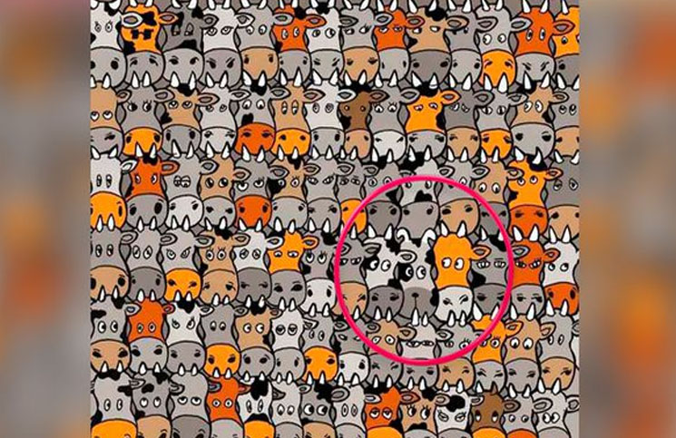 Y el reto visual más reciente tiene que ver con animalitos. En Facebook publicaron una imagen muy graciosa. Son muchas vacas, ordenadas en filas, muy parecidas entre sí. El desafío para esta cuarentena consiste en mirar fijamente el dibujo, y encontrar, en menos de 10 segundo, un perro bebé escondido entre las vacas.