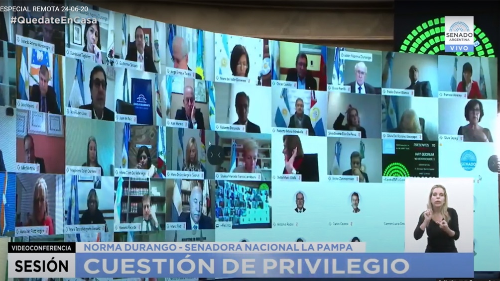 Con 66 senadores conectados y otros cuatro en el recinto de la Cámara alta, la nueva sesión por videoconferencia buscará además aprobar una serie de convenios internacionales sobre la eliminación de la violencia y el acoso laboral y sobre extradiciones entre Argentina, Rumania y Brasil.